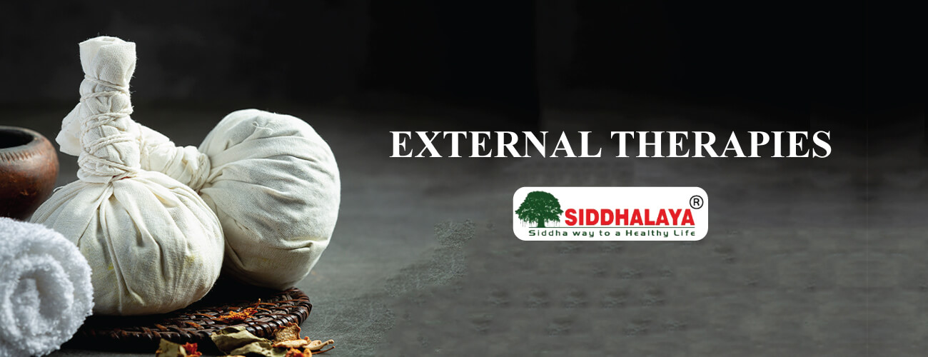 The traditional Dravidian system of medicine referred to popularly as siddha medicine is a vast repository of external therapies particularly, administration of drugs through routes other than oral. These procedures are as important as the internal siddha medicines in the management of health and disease. Most of these therapies aim in maintaining a healthy equilibrium of the physiological factors (Vatham, Pitham & Kapham). According to the Siddha system of medicine, there are 32 external therapies including Ophthalmic application, Nasal application, Aural application, Steam therapy, Heat therapy, Physical manipulation etc. External therapies help greatly in treating – Chronic Degenerative diseases like Osteo Arthritis, Rheumatoid Arthritis, Lumbar Spondylosis, Cervical Spondylosis and also Headaches, Insomnia, Autism, Stress management, sinusitis, Cough, haemorrhoids, piles, wound healing, Vericose ulcer and Diabetic food ulcer.